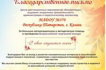 за плодотворную работу, творческий подход, и большой личный вклад в воспитание подрастающего поколения, популяризацию искусства, сохранение национальных культур и активное участие во Всероссийском творческом конкурсе