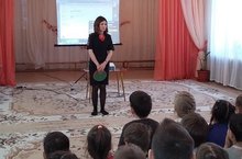 В детском саду перед воспитанниками старших и подготовительных групп выступила старший инспектор ГИБДД Юлия Юрьевна, отвечала на вопросы детей, после всего этого был просмотр мультфильма " Дети! Будьте бдительны на дорогах".
