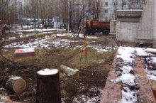 Ветки и стволы деревьев, оставшиеся после спиливания,сегодня вывезены с территории детского сада. Корни этих спиленных деревьев разрушали фундамент здания и асфальтовое покрытие.