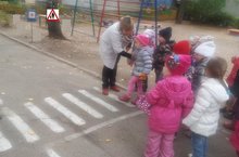 По годовому плану работы в группах проведены интегрированные занятия по правилам дорожного движения. Детей ознакомили с конкретными правилами дорожного движения, рассказывали им о назначении желтого сигнала светофора, объясняли правила поведения пешеходов : ходить по улице спокойным шагом, придерживаясь правой стороны тротуара; переходить дорогу только по переходу , при зеленом свете светофора. Воспитатели знакомили детей со словами «проезжая часть», «одностороннеее и двустороннее движение», «пешеход», «наземный (подземный) переход».