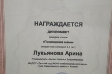 Поздравляем нашу воспитанницу, Лукьянову Арину, дипломанта конкурса чтецов "Посвящение маме" 25.11.2019