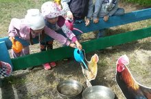 Пусть попьют водички курочка и петушок. Видовая точка "Поле", экологической тропы детского сада. 20.07.2018