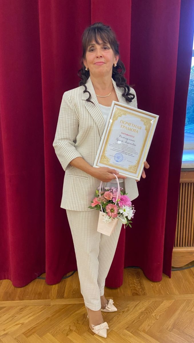 От всей души поздравляем уважаемую Гузель Агзамовну Салимуллину с заслуженной наградой- Почетной Грамотой Российской Федерации за многолетний добросовестный труд и значительные заслуги в сфере образования.