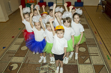 Участвуем в районном конкурсе спортивных танцев. Участники - дети подготовительной группы № 8.