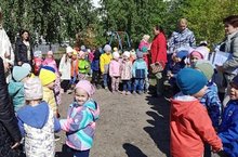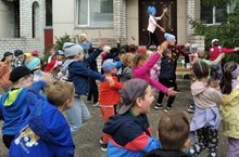 К нам в гости приехал паровозик из Ромашково, а также аниматор с подвижными играми и рассказами о профессиях.