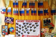 18 февраля 2022 г. в детском саду организована выставка коллективных работ «Наши защитники», посвященная Дню защитника Отечества. Все дети детского сада активно принимали участие и с удовольствием проявляли свои творческие способности. Цель проведения выставки - пропаганда патриотических духовных ценностей, национальной гордости, уважения к чести и достоинству людей, выбравших своей профессией служение и защиту Отечества.