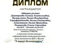 27 марта в 2019 года в ГИБДД г.Казани прошло награждение победителей городского смотра- конкурса информационно –социальных роликов среди воспитателей ДОУ г.Казани «5 минут безопасности». Педагоги нашего детского сада заняли III место.