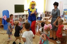 6 августа детский сад принял новых воспитанников. Пять групп открыли свои двери для малышей, а встречал детей веселый клоун.