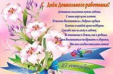 С детишками может работать только искренне любящий их человек, с большим благородным сердцем и чистой душой. Наш труд — непрост, но сколько радости получаешь, глядя в эти маленькие беззаботные глазки! Пусть ваша жизнь будет просто переполнена любовью родных и уважением воспитанников и их родителей. Пусть энергия не иссякает, а оптимизм поможет реализовать все самые сложные задачи в жизни. Творческих успехов в таком благородном деле!