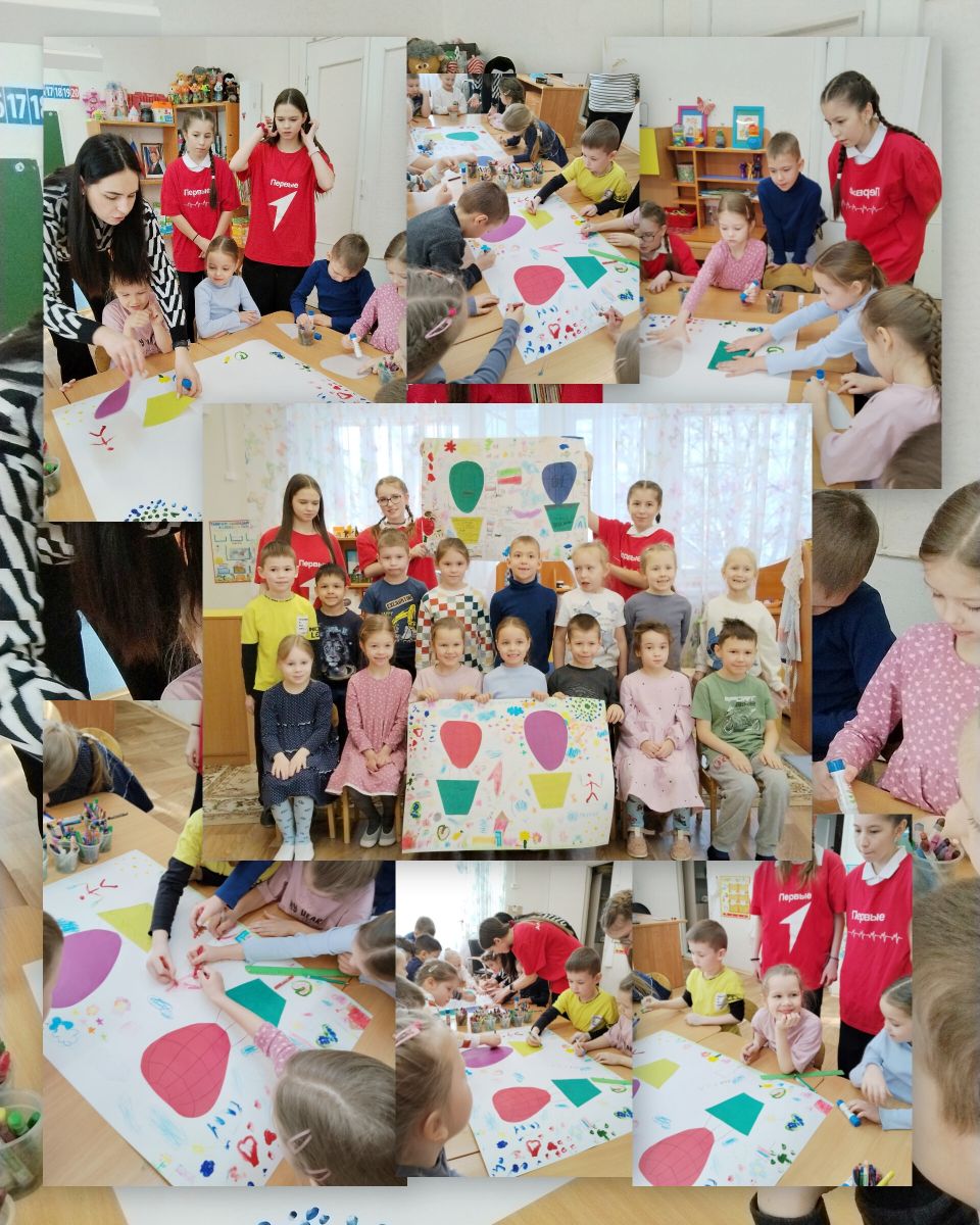 Сегодня ребята из нашей подготовительной группы приняли участие в замечательном мероприятии проекта «Движение первых». Старшеклассники из подшефной школы пришли к нам в гости и провели интереснейший мастер-класс по рисованию. Вместе с нашими воспитанниками они создали потрясающий плакат на тему дружбы, наполненный яркими красками и позитивом.