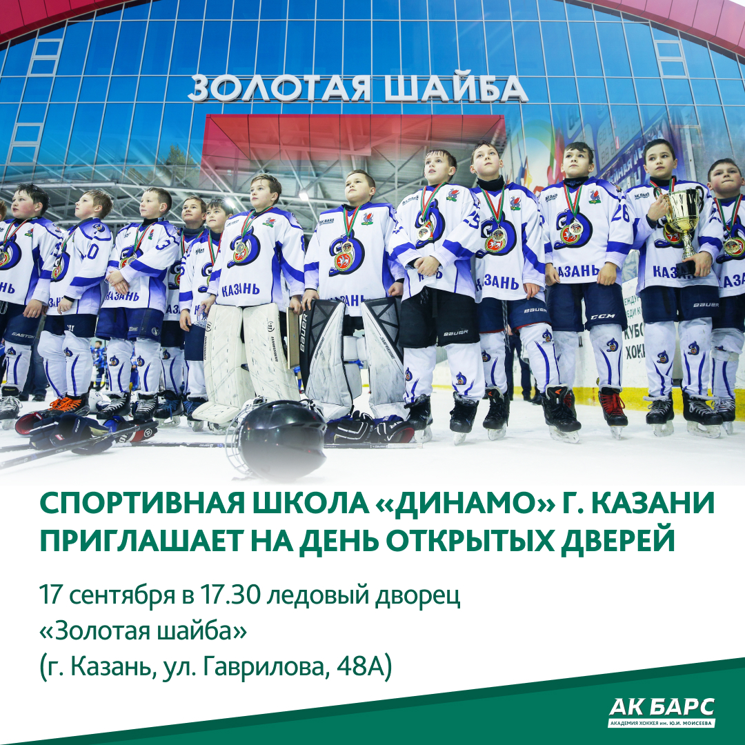 Спортивная школа "Динамо" г. Казани приглашает на день открытых дверей, которое состоится 17 сентября в 17.30 ледовый дворец "Золотая шайба" (г. Казань, Гаврилова - 48 А)