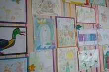 В детском саду проходит выставка детских рисунков по произведениям татарских писателей.