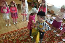 К младшим дошкольникам пришла в гости сама ВЕСНА. С ней ребята пели песни на татарском языке и танцевали, радуясь солнцу и весеннему времени года. Под мелодичные звуки курая дети позвали в гости сказку «Репка на новый лад», в постановке которой каждый с большим удовольствием принял участие. Ребята звали на подмогу героев сказки на татарском языке и вспоминали пройденные слова: шалкан, бабай, әби, кыз, песи, Акбай, тычкан. Когда репку вытянули, все: и репка, и Бабай, и Әби, и 6 внучек, и 3 внука и 2 Акбая и, 2 песи, и тычкан очень обрадовались, а в конце все вместе станцевали татарский народный танец.