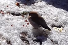 На участке 4 группы сидела птица - Свиристель. Дети подкармливали ее хлебом, ягодами рябины, а она с удовольствием угощалась. Почему она не улетела? Может она была ранена? Что произошло, мы не знаем, только ее не испугал крик шумных детей, и она продолжала сидеть на одном месте. Дети, которые возвращались с прогулки, останавливались, наблюдали, радовались необычной птице. Нечасто у нас бывают такие гости….