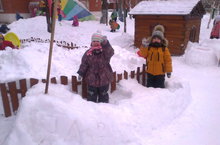 Уже с 9 января дети младшей группы № 13, благодаря воспитателям и родителям, катаются на горке из снега. Но на участке данной группы вы также увидите: сани, которые везет олень, лодочку у причала и теперь, во время прогулки, дети могут почувствовать себя настоящими капитанами.