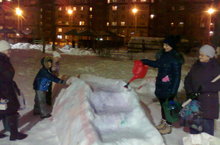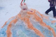Родители и дети старшей группы № 9 группы очень творчески подошли к украшению своего участка. Они принесли готовые заготовки, сделанные дома совместно с детьми и, поддерживая морскую тему участка, сделали из снега фигуру осьминога.