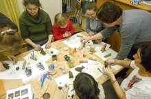 Сегодня вечером на мастер-классе педагоги, родители и дети учились лепить из глины свистульки -символ нынешнего года. Это занятие всем очень понравилось, что даже не хотелось расходиться. Работы, которые у них получились, можно будет посмотреть чуть позже, после обжига, следите за новостями.