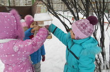 Дети всех возрастных групп, родители и сотрудники детского сада также приняли участие в акции «Кормушка». Фотографии можно посмотреть в фотогалерее «Кормушка для птиц – 2014»