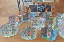 В преддверии Дня космонавтики в старшей группе № 9 прошли тематические занятия. Ребята посмотрели презентации про космос, планеты и спутники, про полёт человека в космос. Вдохновившись просмотренным материалом, дети сделали объемные открытки "Полёт в космос".