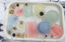 20 января в вальдорфской группе №14 дети совместно с воспитателем делали цветные льдинки. Ребята наблюдали окрашивание воды с помощью акварельных красок, разливали по емкостям и наблюдали через окно превращение воды в лед. Теперь чудесные льдинки украшают участок.