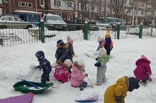 Слепим мы снеговика!Малыши 13 группы весело проводят время на прогулке! Радость и веселье, когда снега много! А с лопатой в руках прогулка ещё веселее и полезнее!