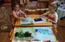 В вальдорфской группе № 14 "Пчелки" доброй традицией стала подготовка детьми новогодних подарков для родителей своими руками, совместно с воспитателями. В этом году ребята выкладывают картина из шерсти.