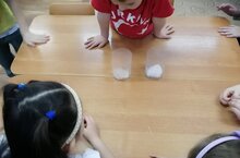 Ребята старшей группы 6 провели эксперимент "Что растает первым?". Для этого они принесли с прогулки снег (снеговой шарик), сосульки и