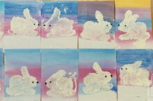 Ребята младшей группы №9 учились видоизменять выразительный образ зайчика: помогали ему менять летнюю шубку на зимнюю. А также познакомились с новым навыком рисования гуашью способом "тычка".