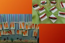 Осень щедра дарами. В саду и в огороде кипит работа. Люди спешат убрать урожай до наступления холодов. Посмотрите, какие сочные дольки арбуза получились у ребят средней группы 8. А морковка просто красавица!