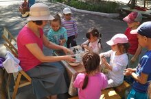 Понедельник в вальдорфских группах - день лепки. Летом-лепка из голубой глины. Чумазые ладошки на этот раз - красивого голубого цвета.