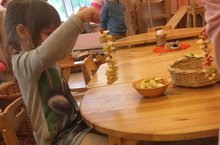 В вальдорфской группе № 12 началась пора осенних заготовок. В этом году природа щедро наделила нас богатым урожаем яблок. А ребята старательно надевают каждую дольку яблока на ниточку. Теперь нашу группу украшают яблочные и рябиновые бусы!
