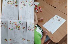 Ребята второй младшей группы № 2 совместно с воспитателями продолжают изучать тему "Осень". Сегодня они сделали осенние деревья, наклеивая бумагу на шаблон дерева, а также повторили знания о цветах осени и ее признаках.