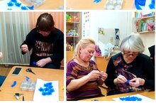 В основном здании воспитатель по художественно-эстетическому развитию Наталья Фёдоровна провела мастер-класс "Весенние цветочки".