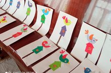 Оживает природа весной, все расцветает. Слышны трели, чириканье и пение птиц. Они радуются теплу, солнышку. А чьи голоса мы слышим? Ребята знают, что весной прилетают грачи, скворцы, ласточки. Вот и сделали аппликацию «Скворечник с птичкой».