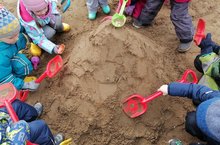 Весна-прекрасное время года, когда оживает природа. Все живые существа радуются тёплым лучам солнца. Вот уже растаял весь снег на площадке детского сада, а ребята младшей группы № 8 так соскучились по играм с песком. Посмотрите какую высокую гору дружно смастерили дети. Настоящий "Эверест".
