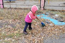 Ребята младшей группы № 8 хоть ещё маленькие, но с удовольствием помогают. Осенью всегда много работы на участке детского сада. Малышам хочется побыть взрослыми и помочь собрать опавшую листву в кучки или подмести дорожки.