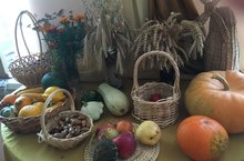 В конце сентября в вальдорфских группах по традиции проходит праздник Урожая. В этом году наш природный стол собрал богатый урожай зерновых колосьев, а также овощей и фруктов. Ребята играли в народные игры, а также пели веселые песни!