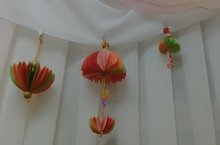 Ребята вырезали, склеивали, создавали зонтики и украшали их бусинами. Вот какая красота у нас получилась!