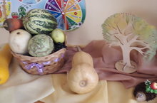 Мы хорошо потрудились - яблок насушили, колосья молотили, муку из зёрен намололи, и на праздник каравай напекли! А белочки, что прибежали к нам на праздник подарили деткам полные корзинки орехов, чтоб росли они крепкими и здоровыми!