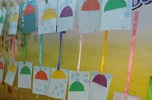 За окном дождь, но ребята младших групп № 7 и 10 не боятся его – у них есть вот такие зонтики, которые они сделали вместе с воспитателем Лией Ильдусовной)) Полюбуйтесь, какие зонтики получились у ребят!!!