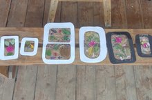 И конце прогулки получилась уникальная композиция или путевой дневник прогулки. Ребёнок в данном случае учится уважительно относится к природе и обращать в творчество уже имеющиеся материалы.