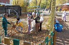 Подготовительная к школе группа № 10 сегодня, во время прогулки, наводили на своём участке порядок. Собирали опавшие листья. Вместе, дружно, веселей - уберем мы все быстрей!