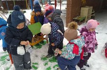 В младшей группе №10 стартовала экологическая акция, посвященная проблеме подкормки птиц зимой. Деткам очень нравиться наблюдать за прилетающими пернатыми. Наблюдения за жизнью птиц помогают детям стать ближе к природе, помогает понять, что необходимо бережно относиться к окружающему миру.Особенно важной частью экологической акции является вовлечение в работу родителей. Наш участок пополнился новыми кормушками. Родители - наши помощники!