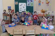 В младшей группе,изучая тему «Перелетные птицы", педагоги способствовали расширению знаний детей о перелетных птицах нашего края,формируя гуманное отношение к природе ( стараясь достичь того,чтобы каждый ребенок осознал,что человек и природа взаимосвязаны). Изучая тему птиц, не забыли и о сказочной жар- птице,которую смастерили дети из цветной бумаги.Основой является силуэт обведенной ладошки ,который компонуется в сказочную птицу,тем самым у детей развиваем творческое воображение,образное мышление,мелкой моторики рук.