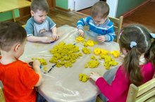 В.А. Сухомлинский говорил: «Ум ребенка находится на кончиках его пальцев», а значит развитие мелкой моторики у детей нужно начинать как можно раньше. Малышей с этой целью можно увлечь кинетическим песком, для развития сенсорных представлений, мелкой моторики рук, творческих способностей дошкольного возраста. В процессе игры с кинетическим песком, у детей развивается тактильная чувствительность. Манипуляции с песком оказывают благотворное влияние на эмоциональное состояние ребенка, помогает раскрепоститься и приучает к концентрации внимания. Игра с кинетическим песком даже в одиночку очень полезна и увлекательна, а в компании со сверстниками способствует развитию элементарных навыков общения. Воспитатель младшей группы регулярно проводят игровую деятельность с использованием кинетического песка.
