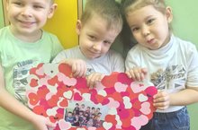 делали яркие, красочные валентинки друг другу в подарок, создавая теплую и радостную атмосферу праздника. Каждый был счастлив порадовать товарища. В довершении праздника , дети совместно с воспитателями оформили праздничную открытку, чтобы порадовать своих родителей. -