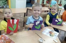Цель: Учить составлять композицию из заготовленных деталей, продолжать упражнять в аккуратном и ровном наклеивании. Воспитывать желание проявлять бережные чувства и заботу к маме. -