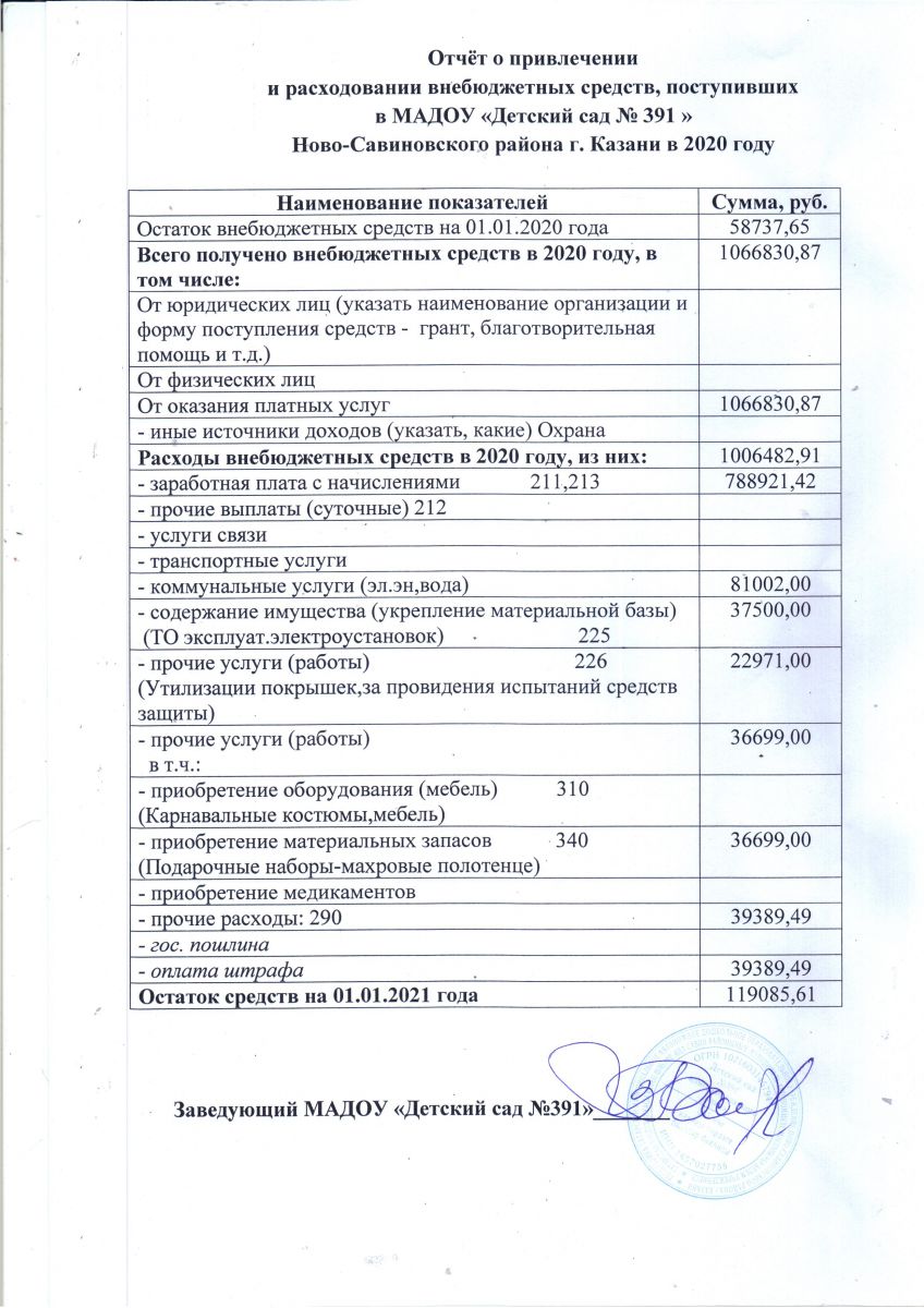 Отчет о привлечении и расходовании внебюджетных средств за 2020 год