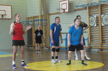 Соревнования по воллейболу между командами учащихся и родителей школы.