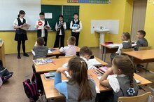 Члены команды ЮИД 5а класса рассказали первоклассникам про дорожные знаки и провели с учениками Викторину по теме "Знаешь ли ты дорожные знаки?"